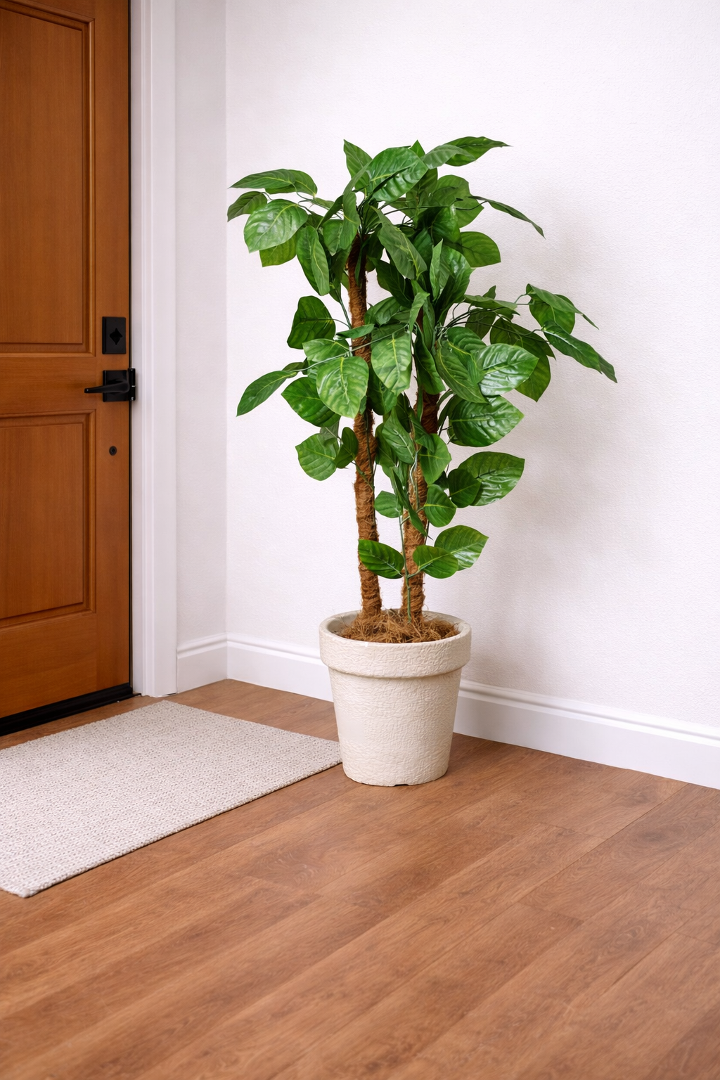 Designed with realistic double-layered green leaves, the plant mimics the natural appearance of tropical indoor plants. The carefully crafted leaves feature natural textures and vibrant green shades, giving the plant a lifelike and refreshing look.