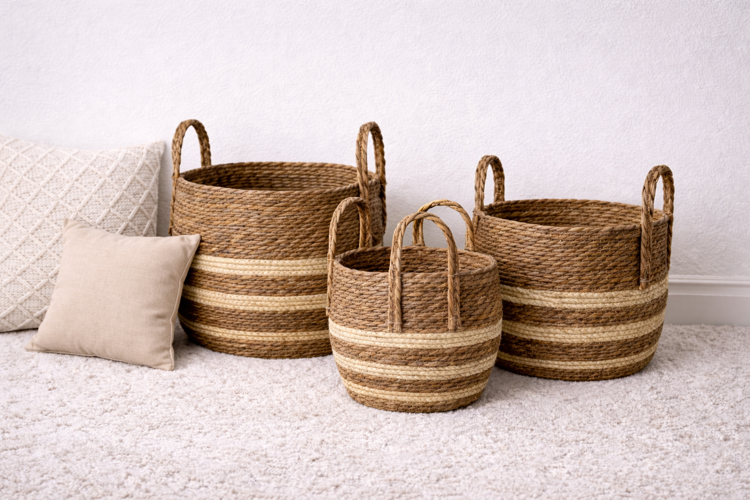 Available in three different sizes, you can use them together for a stylish layered look or place them separately in different areas of your home. S = 8×8 M = 9×9 L = 10×10Free Return