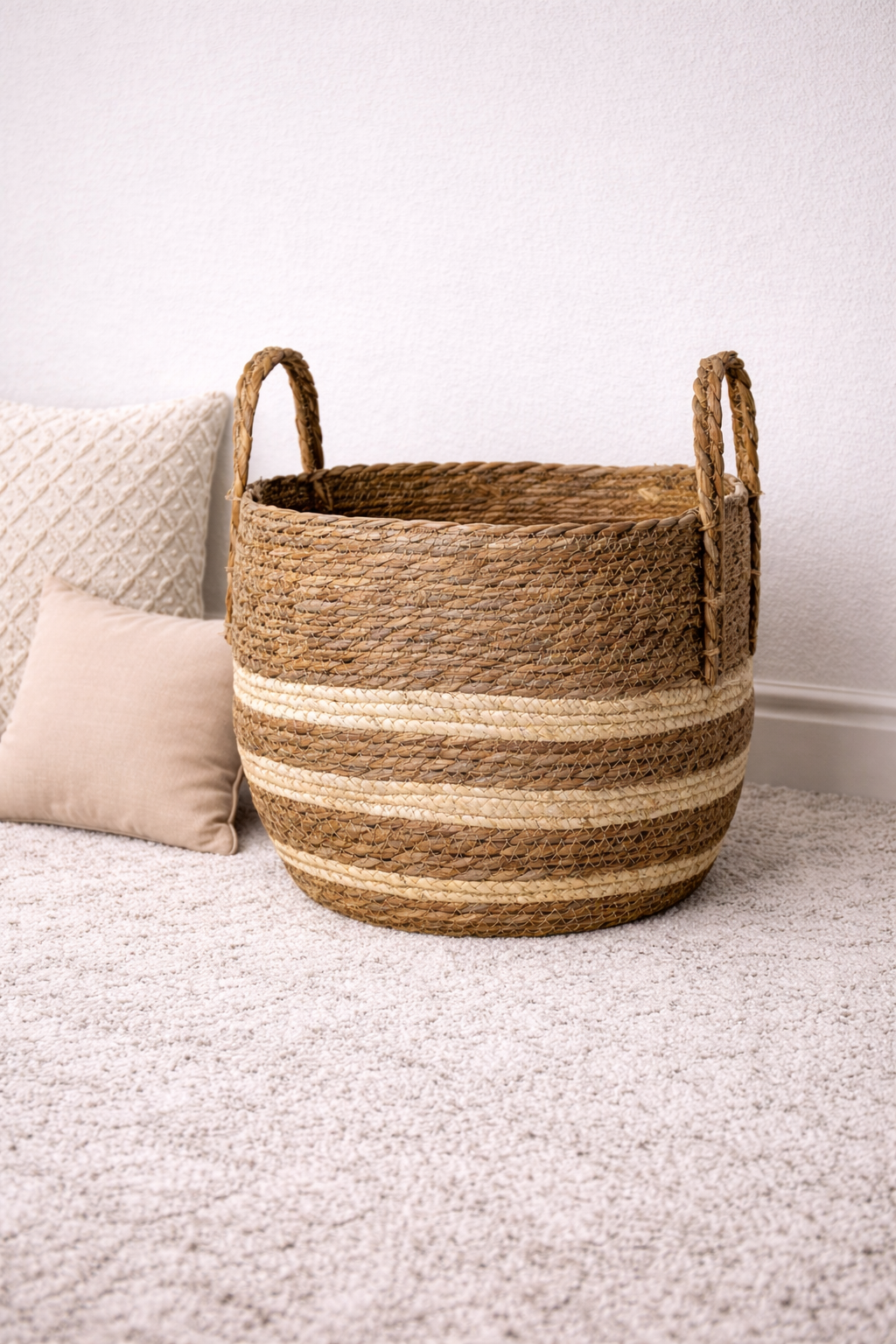 Perfect for storing household essentials such as blankets, toys, laundry, plants, or magazines, this basket features strong woven handles for easy lifting and movement. The breathable natural material makes it ideal for everyday use while adding warmth and texture to any space.