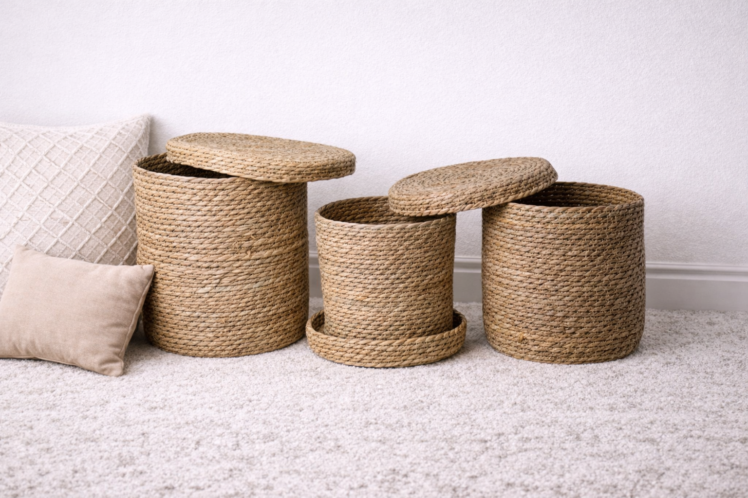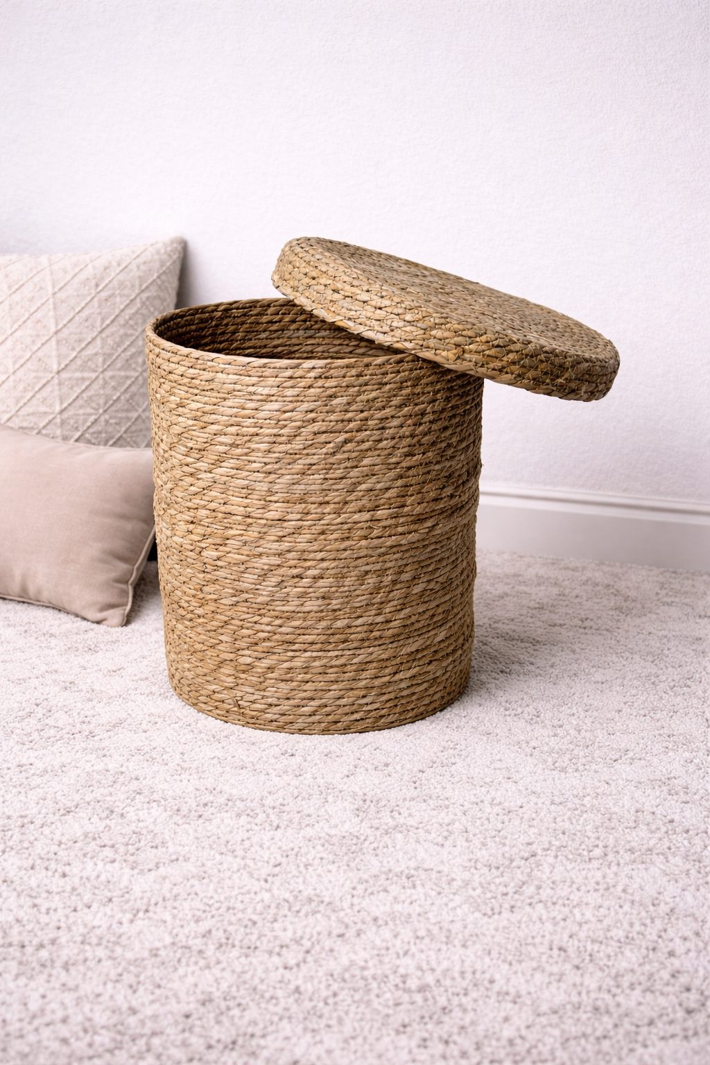 Its sturdy construction makes it ideal for storing laundry, toys, blankets, accessories, or everyday household essentials. The natural texture and neutral tone blend seamlessly with boho, farmhouse, coastal, and modern interiors.